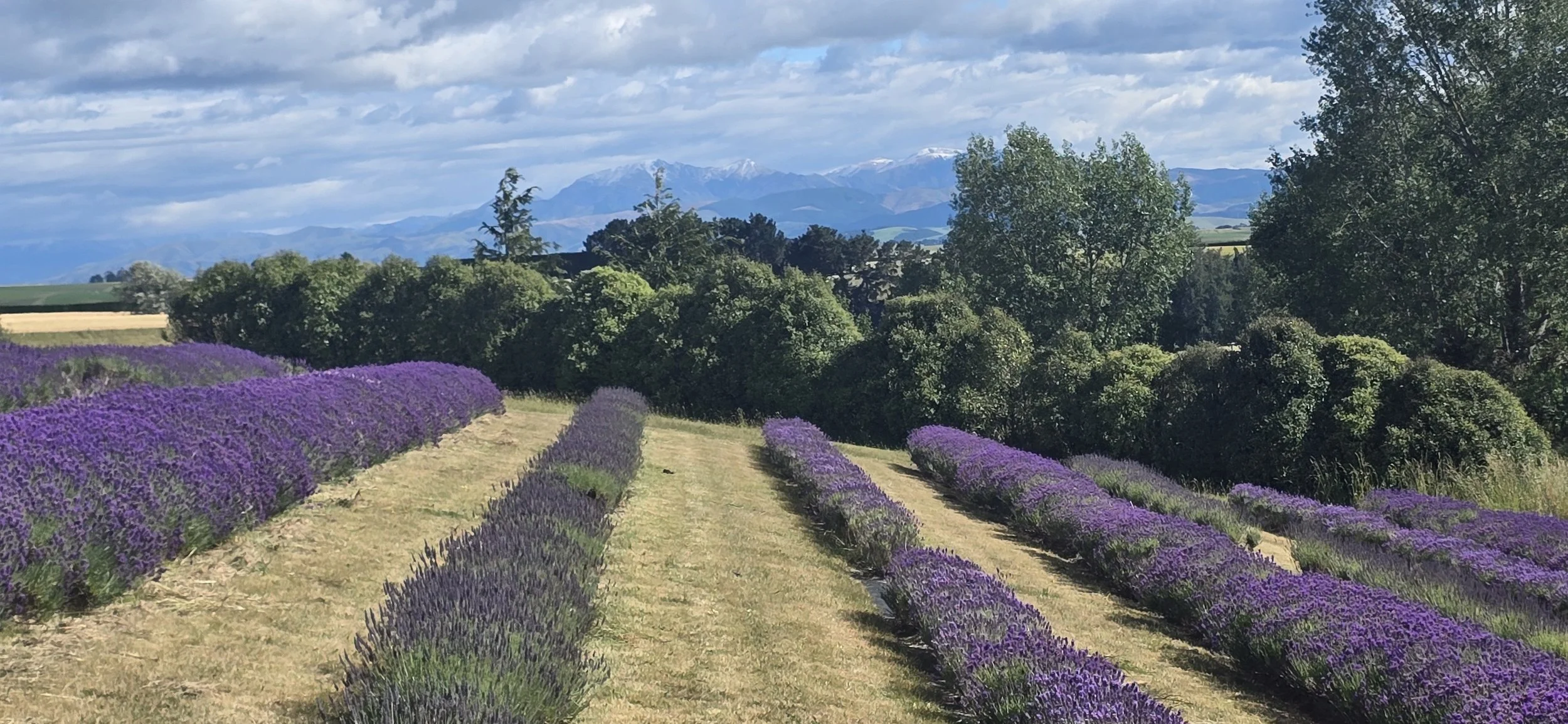 Looking out towards the foothills of the Southern Alps over the lavender fields.